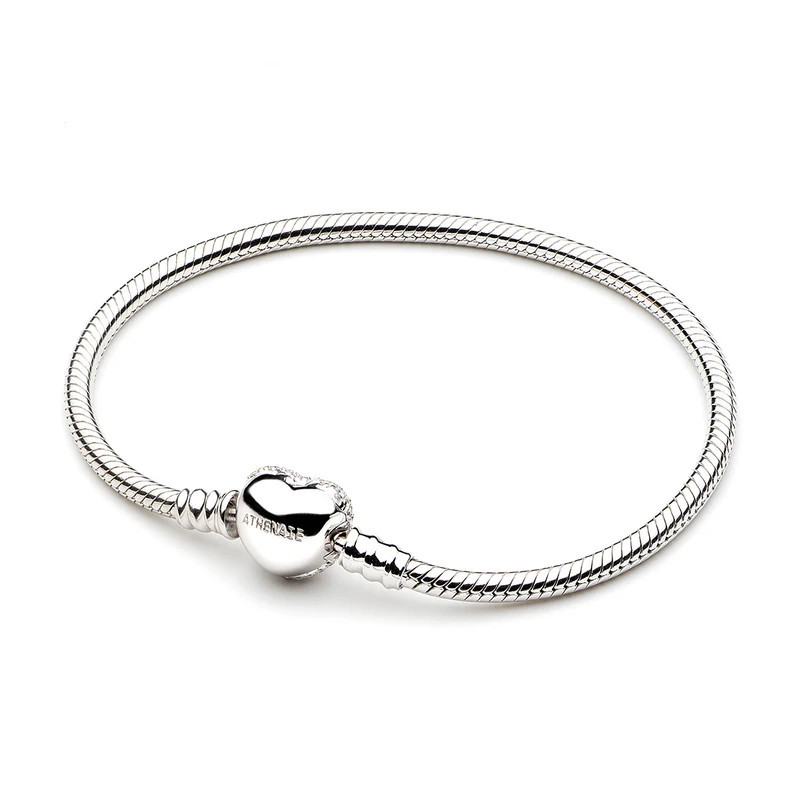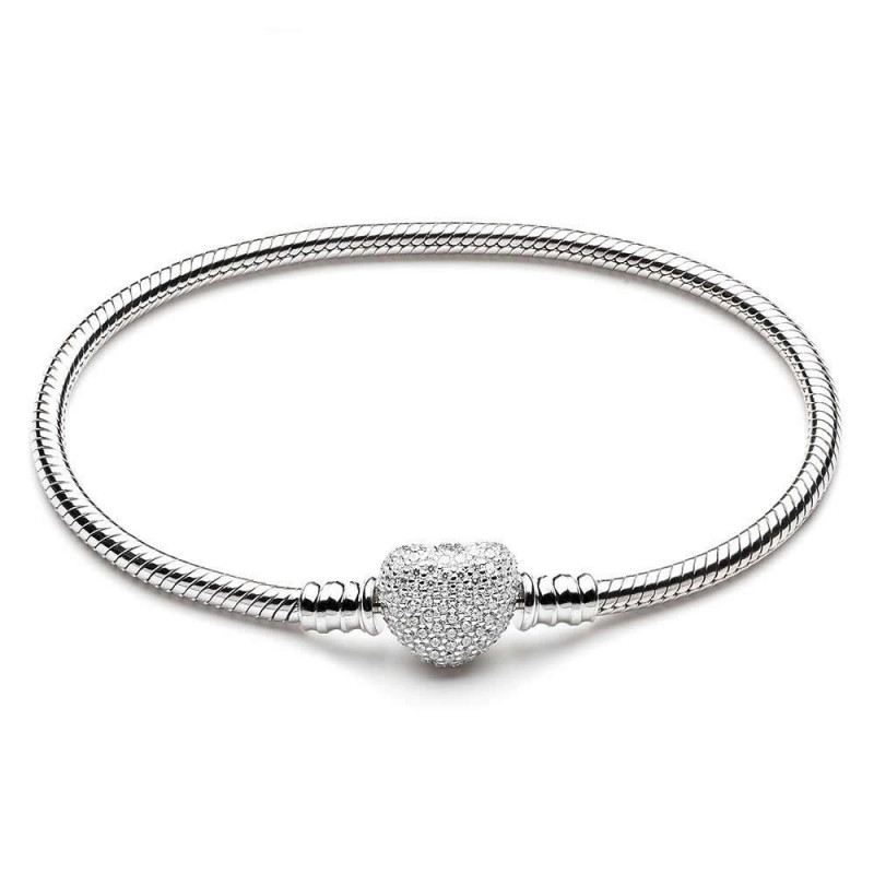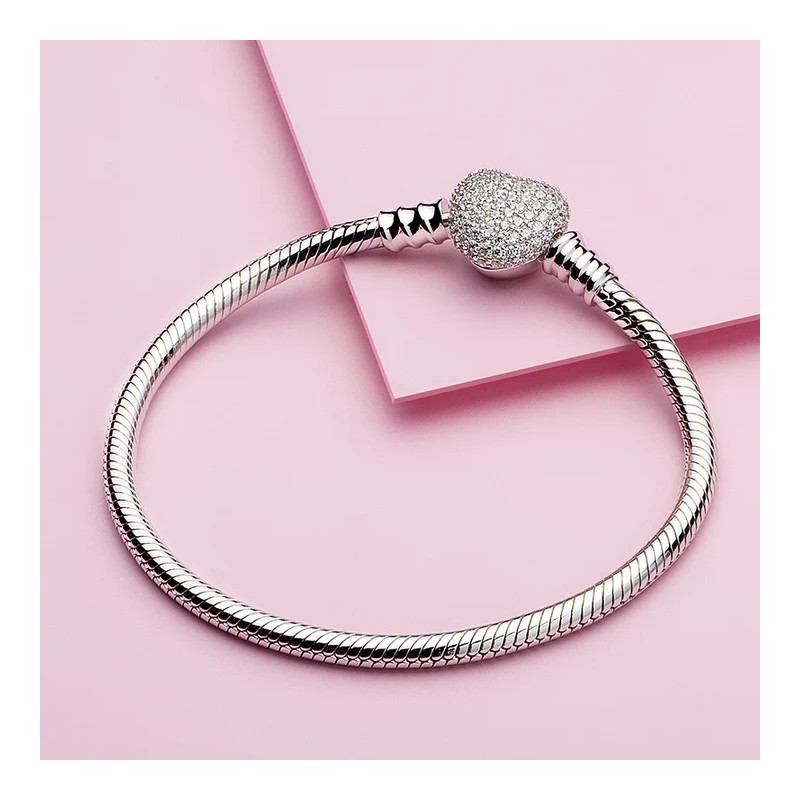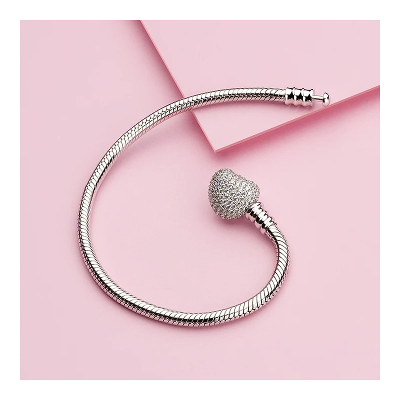 Pulsera de Plata de Ley 925 | Plata esterlina con circonitas en el broche con forma de corazón, también de plata de ley. Se puede combinar con Chram/Abalorios o sola. En caso de introducir charms a la pulsera, es compatible con abalorios de otras marcas mas reconocidas y comerciales.